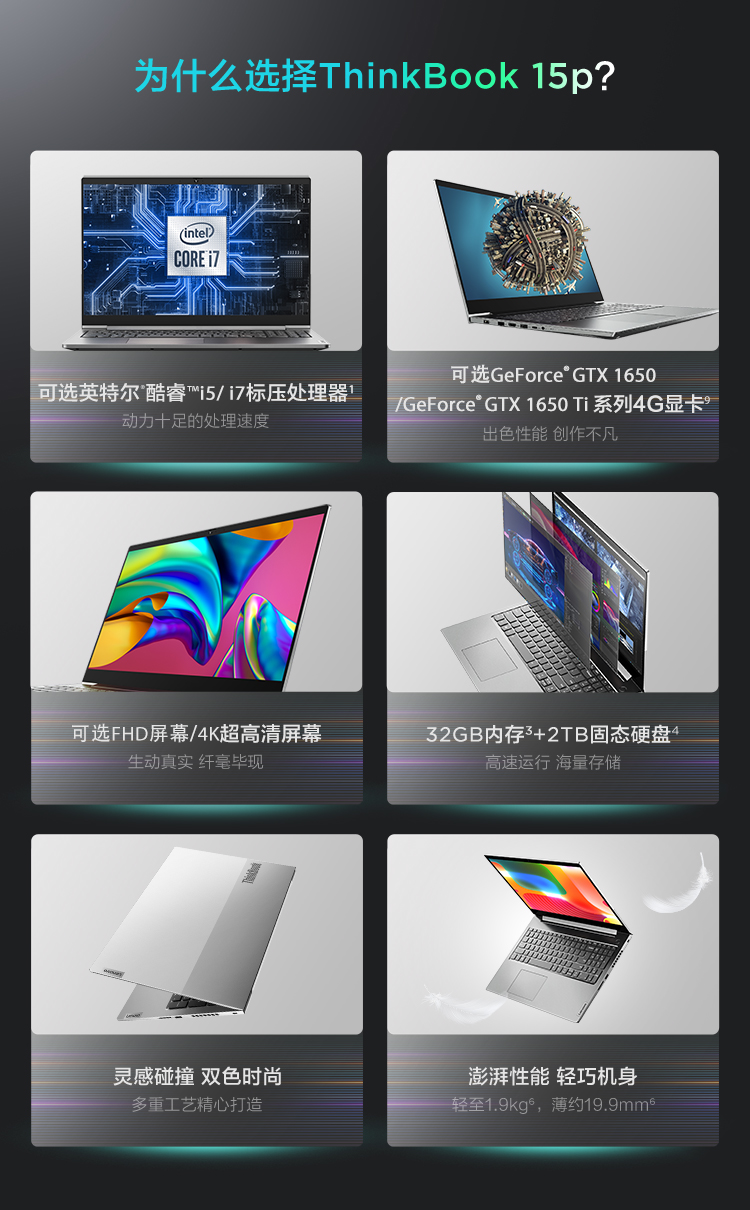 聯(lián)想ThinkBook 15P(00CD) 15.6英寸筆記本電腦 高色域 標(biāo)壓i7 GTX1650Ti-4G顯卡 16G內(nèi)存 512G固態(tài)硬盤