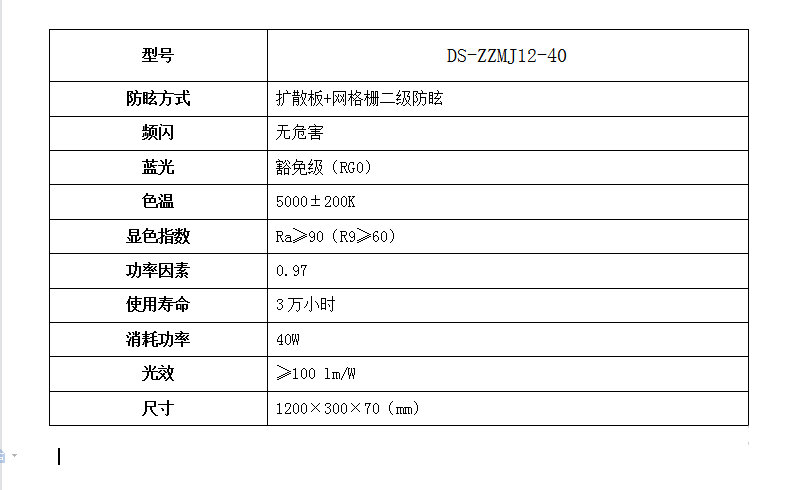 ??低?DS-ZZMJ12-40 格柵燈 1200×300×70(mm)