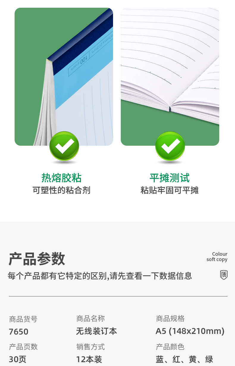 得力 deli 12本A5/30張無線裝訂軟抄本 記事本/ 工作筆記本子/ 日記本 文具辦公用品 7650