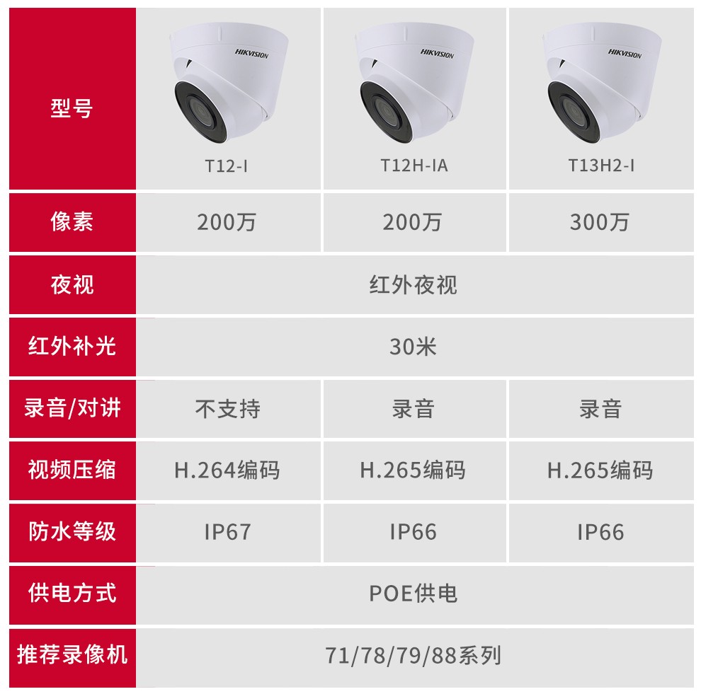 監(jiān)控?cái)z像機(jī) ??低暎℉IKVISION)網(wǎng)絡(luò)監(jiān)控?cái)z像頭紅外夜視室內(nèi)半球攝像機(jī)帶POE DS-IPC-T13H2-I(300萬(wàn)拾音) 4MM焦距