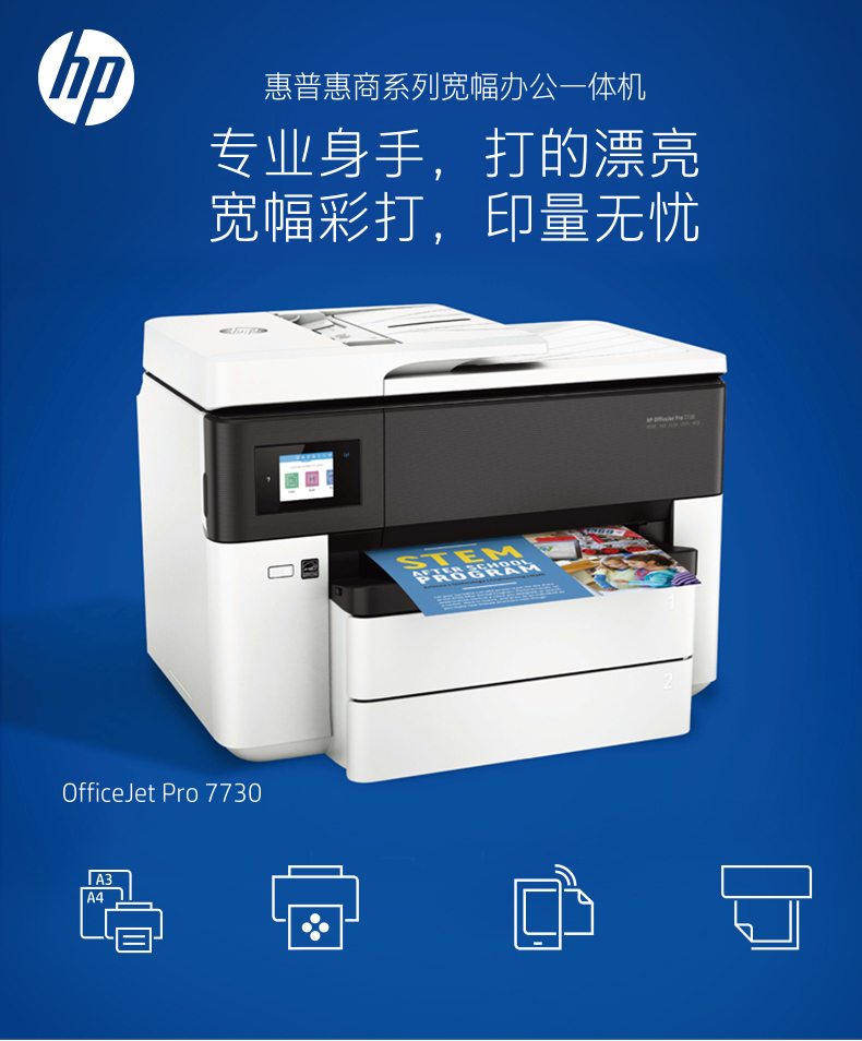 惠普(HP)OJ 7730 無線四合一多功能一體機(jī) 惠商寬幅系列 無線,打印,傳真,掃描,復(fù)?。?740簡(jiǎn)配版)