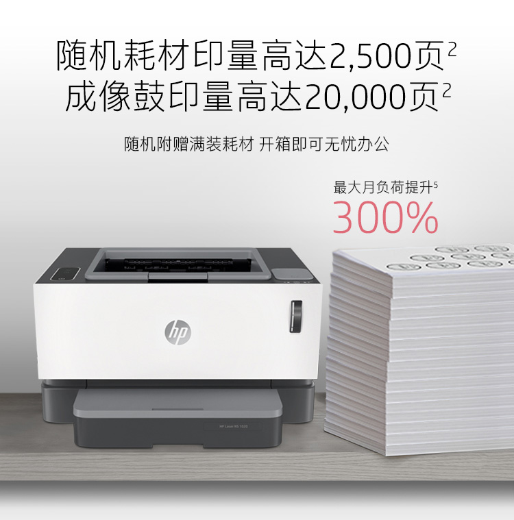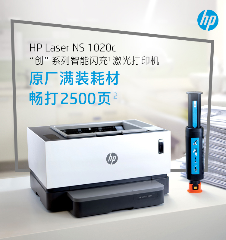 惠普(HP)創(chuàng)系列NS1020c智能閃充大粉倉(cāng)激光打印機(jī) 1020plus升級(jí)款半容裝 15秒充粉單打成本5分錢(qián)