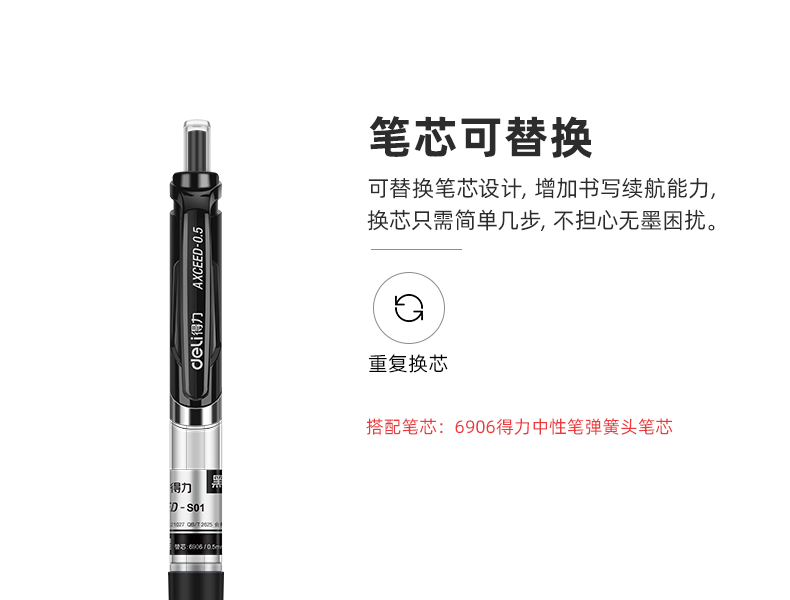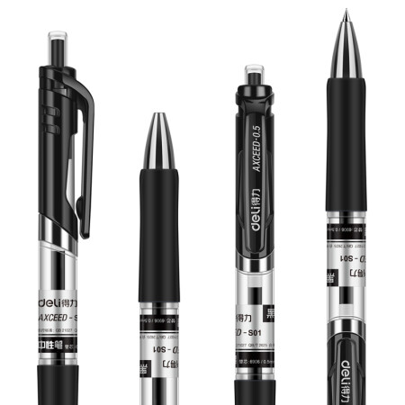 得力 deli S01中性筆簽字筆 0.5mm子彈頭經(jīng)典辦公按動筆水筆 黑色 12支/盒