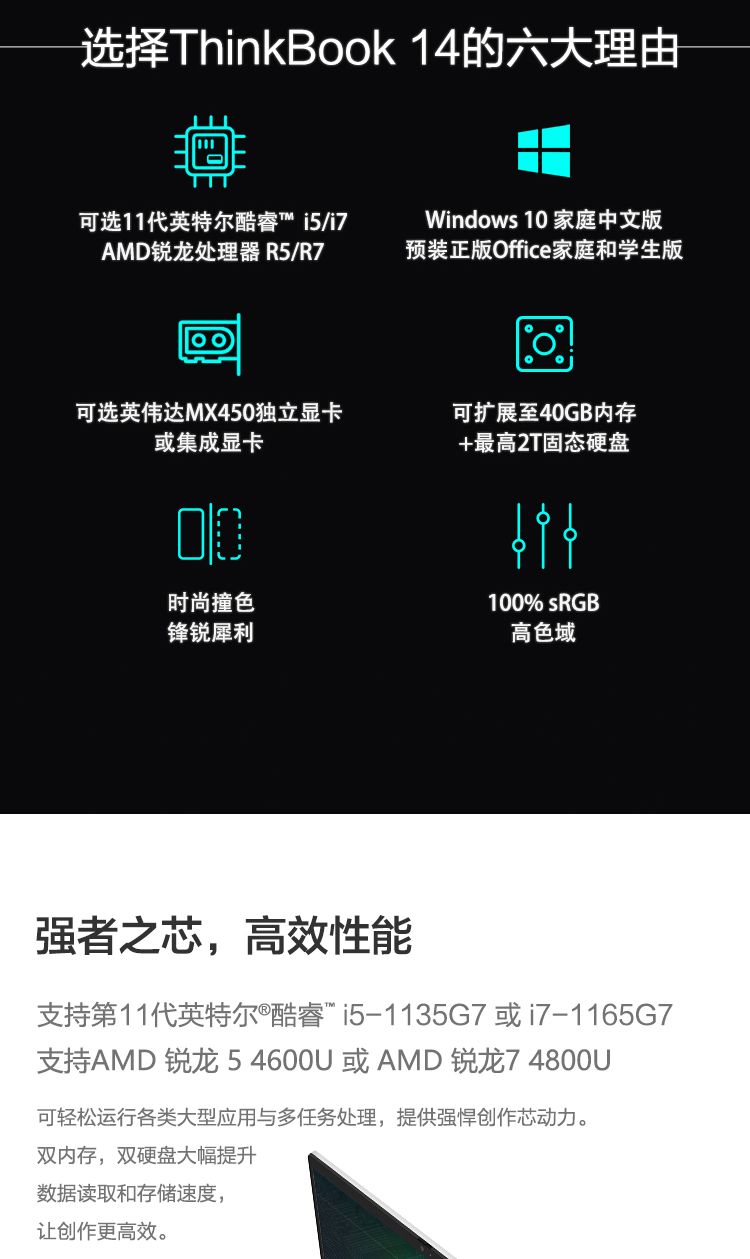 聯(lián)想ThinkBook 14 2021款 14英寸輕薄筆記本電腦 【6ACD】 11代酷睿i5-1135G7 核顯 16G 512G 100%sRGB 高色域 標配
