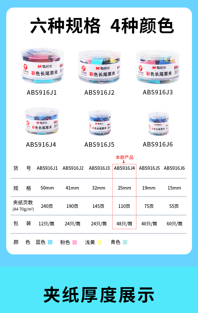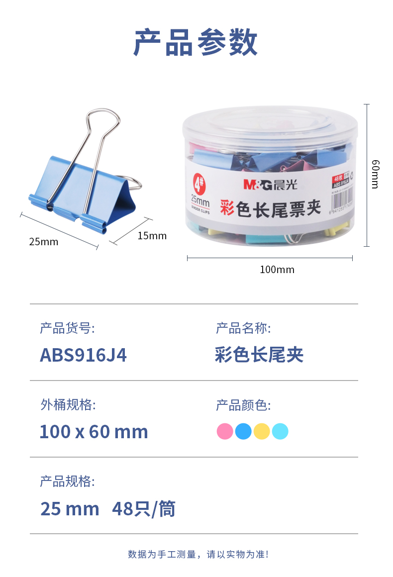 晨光 M&G 文具4#25mm 48只/罐 彩色長(zhǎng)尾夾 中號(hào)金屬票據(jù)夾 經(jīng)濟(jì)型辦公燕尾夾 48只/罐ABS916J4