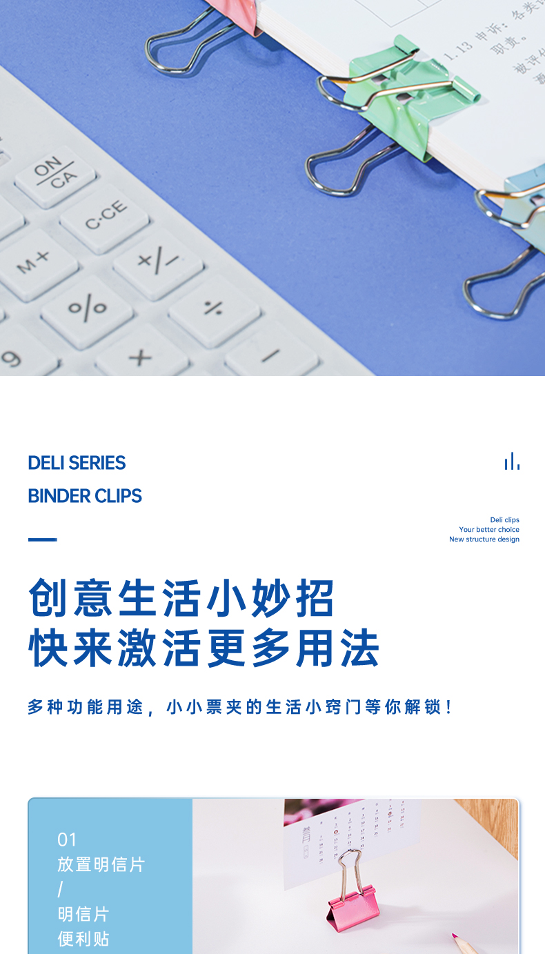得力 deli 24只41mm省力彩色長尾夾票夾 2#金屬燕尾夾票據(jù)夾子 辦公用品 8552S