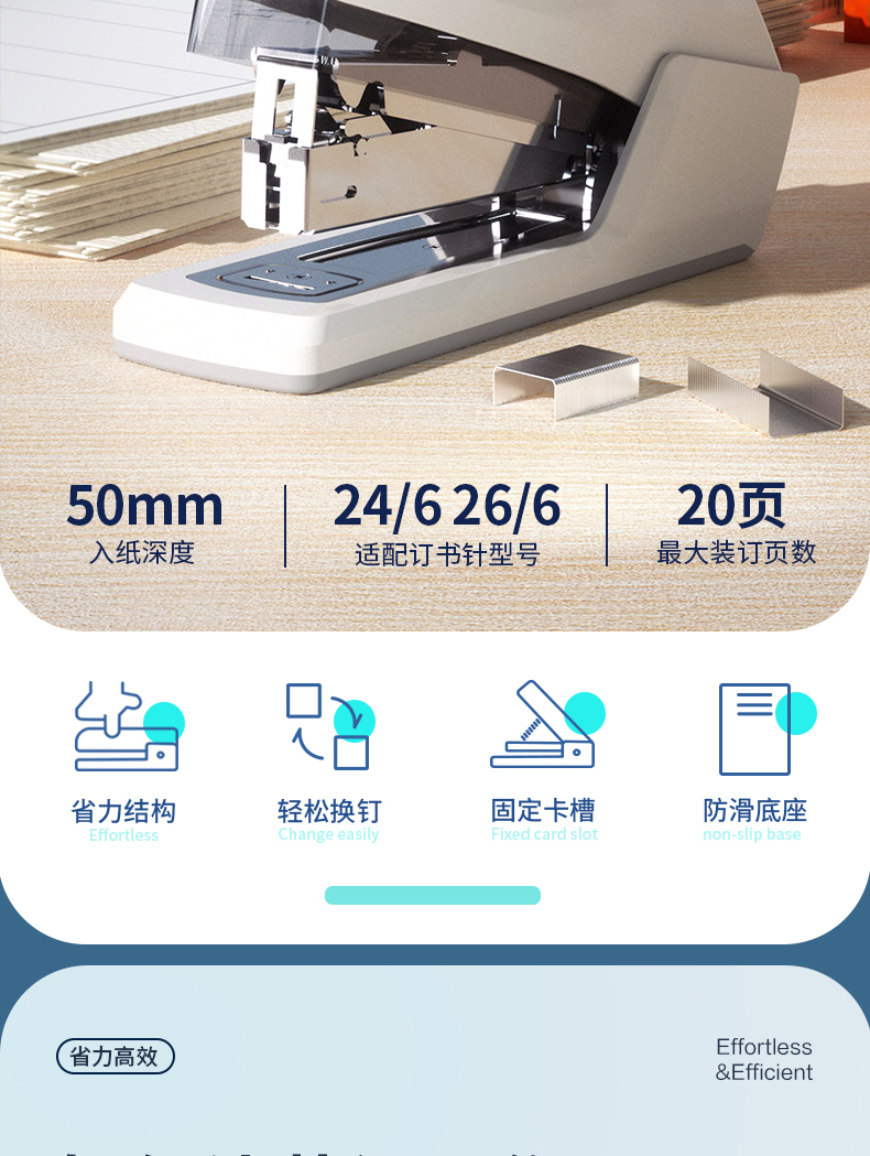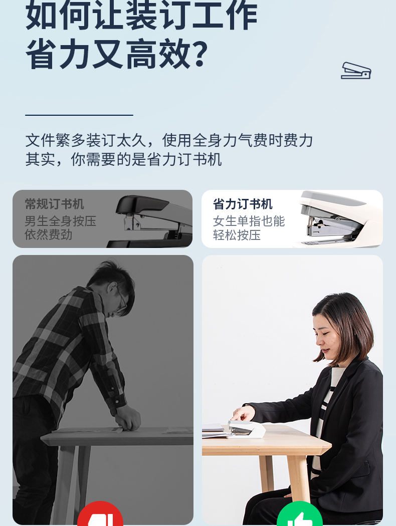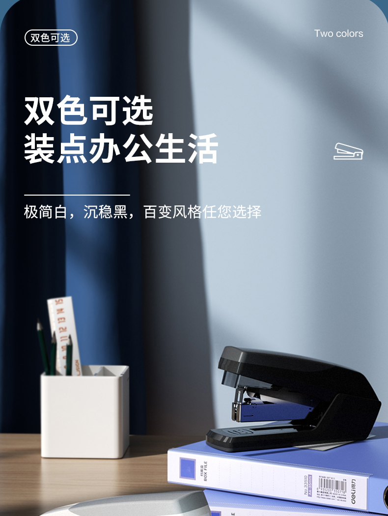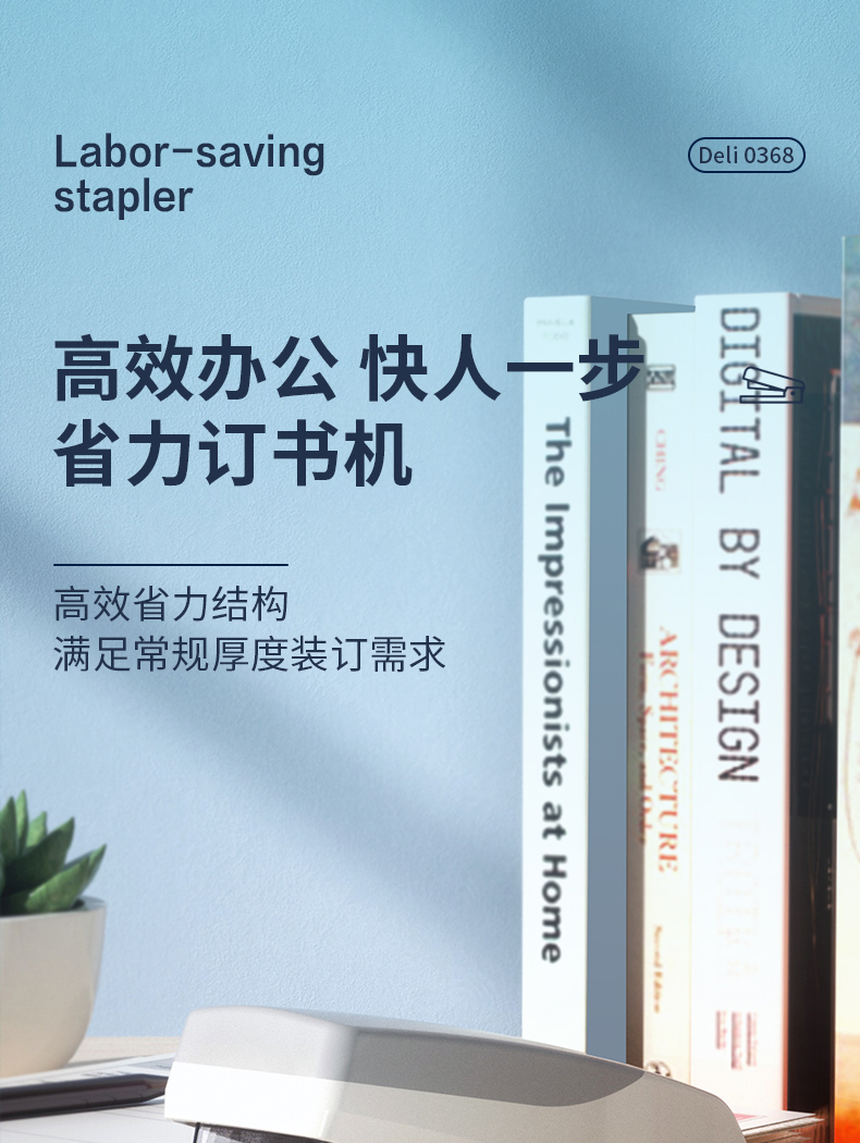 得力 deli 省力型訂書機(jī)/訂書器 適配24/6 12# 及26/6訂書釘 辦公用品 白色0368