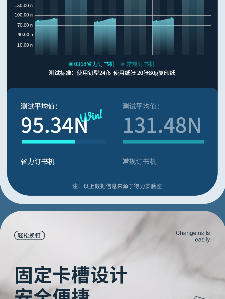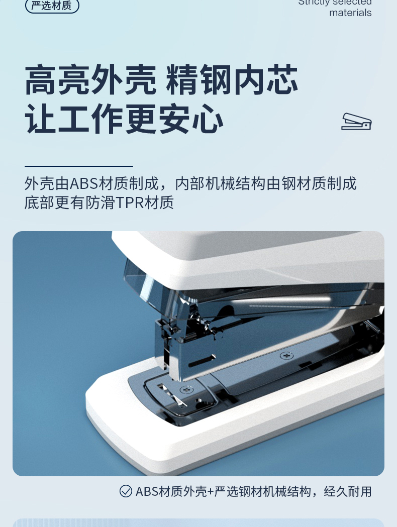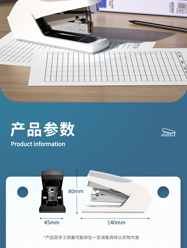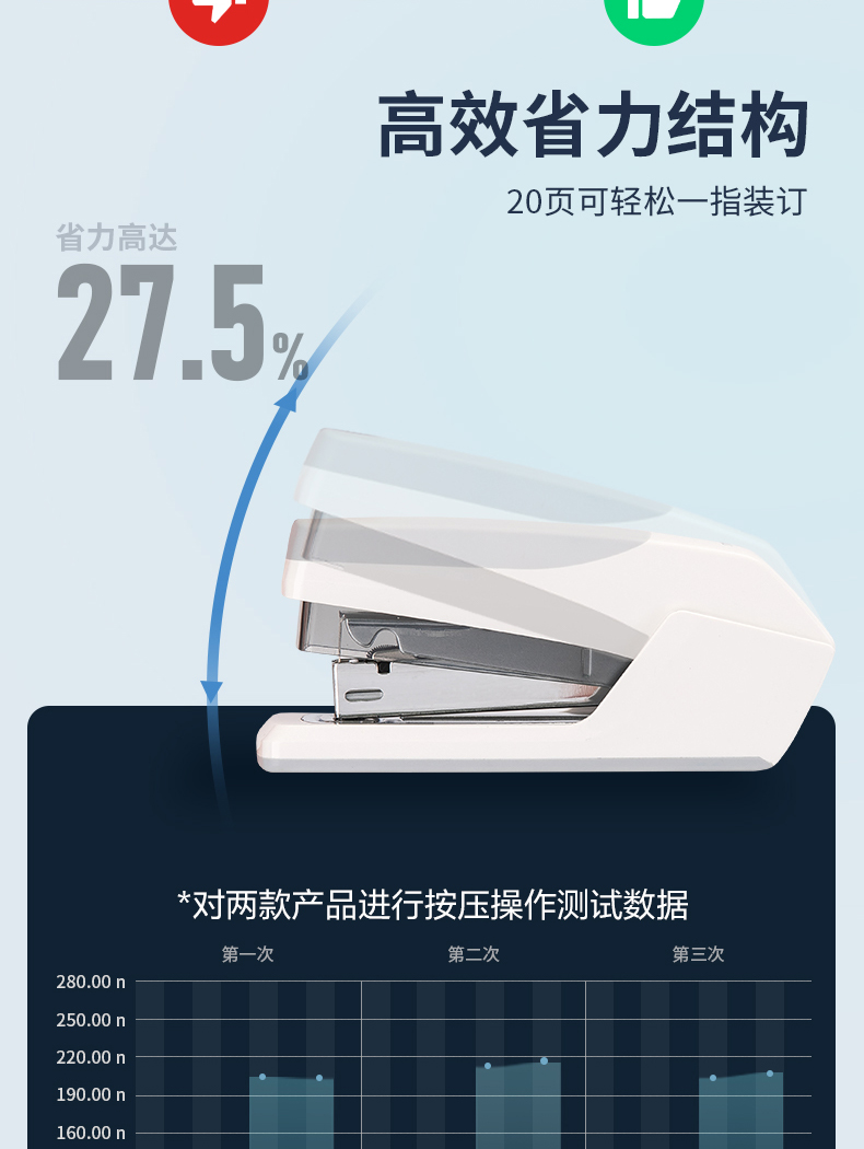 得力 deli 省力型訂書機(jī)/訂書器 適配24/6 12# 及26/6訂書釘 辦公用品 白色0368